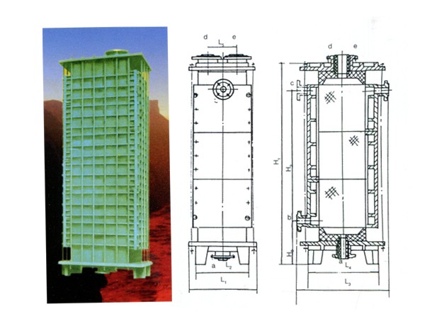 GX型系列列管式石墨降膜吸收器之吸收換熱元件為不透性石墨管,成膜條件極佳,故吸收效率高(與尾氣搭配合吸收率可達(dá)99%)生產(chǎn)強(qiáng)度大 CQ22/932X3000單管日產(chǎn)量可達(dá)0.8-1.2t33%鹽酸/天),且調(diào)節(jié)范圍大,產(chǎn)品不受污染,純度好,主要用于吸收Hcl氣制鹽酸。也可處理含Hcl、S02、NH2, HF、P2O5,H2S等氣體之尾氣,既回收某些成分 ,制取副產(chǎn)品減少或消除環(huán)境污染。本設(shè) 備之氣